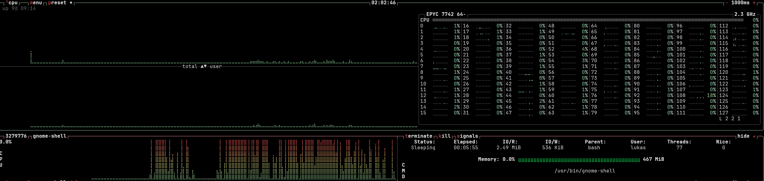 - All gnome-shell sessions combined have the thread count of the cpu