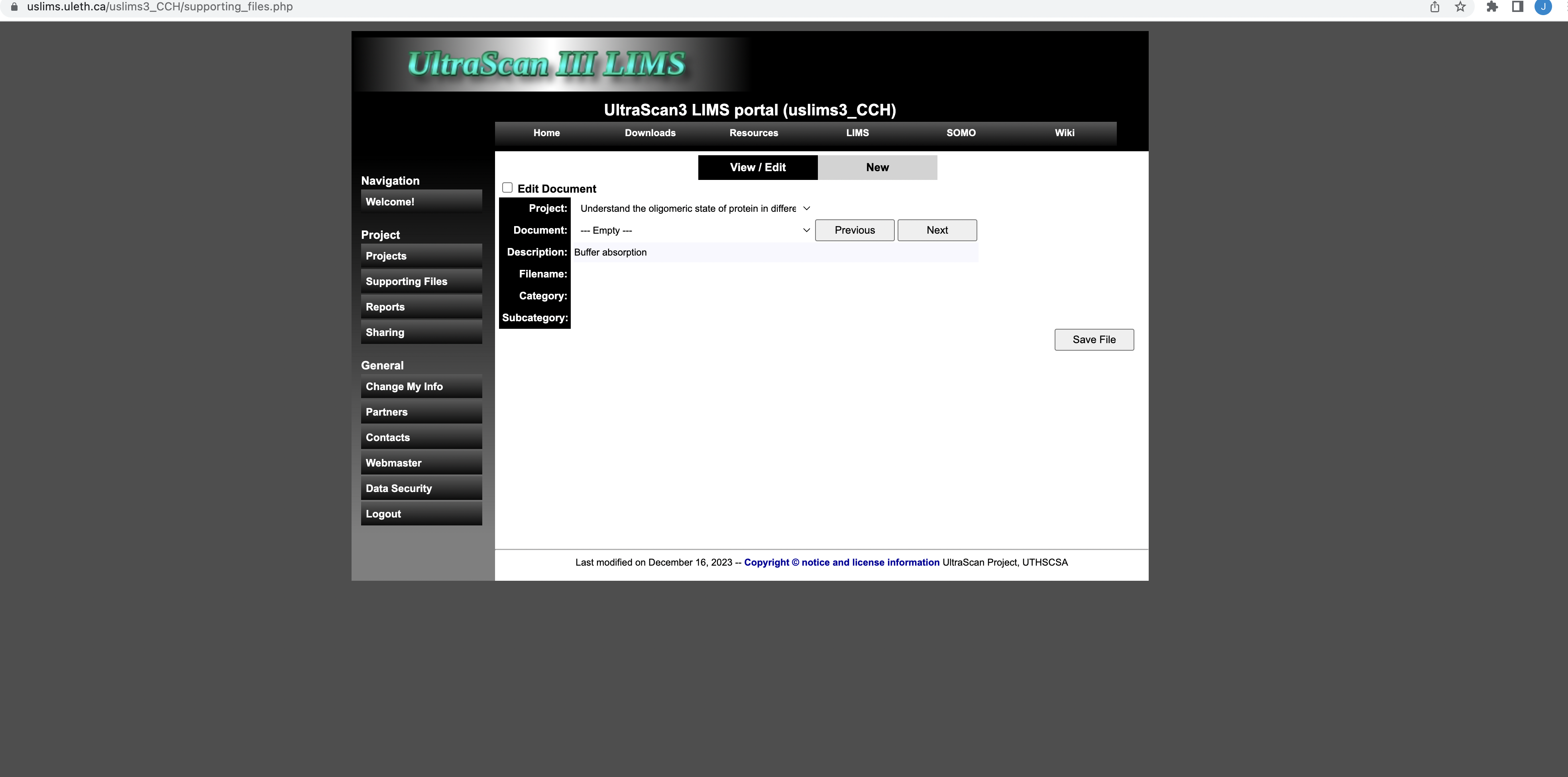 Please find the screenshot of the website (UltraScan III LIMS - supporting documents) and also, I have provided the portal image where I have mentioned the project details.